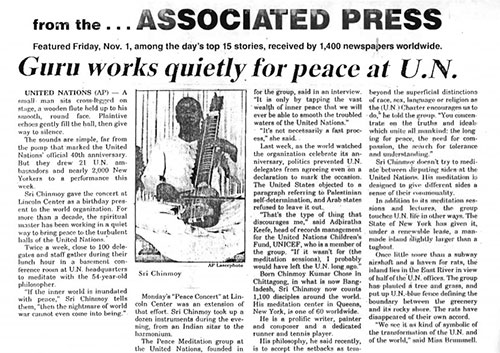 A selection of archive newspaper articles about Sri Chinmoy.